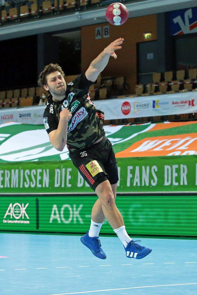 Malte Donker beim Torwurf, noch im Trikot von Hannover-Burgdorf. Foto: Imago Images / Oliver Vogler